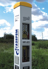 КВП ПВЕК із БСЗ - пластикова стійка (трикутник зі стороною 180 ± 10 мм - варіант виконання 1 або квадрат зі стороною 200 ± 10 мм - варіант виконання 2) з інформаційним маркуванням та контрольний щиток із контактними затискачами і клемами для вимірювання параметрів ЕХЗ та блоком сумісного захисту.