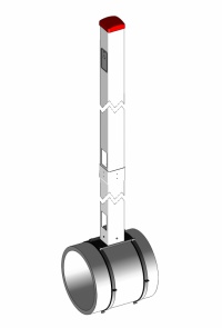 Пристрій складається з металевої платформи 3, яка кріпиться на тілі трубопроводу 6 за допомогою хомутів 4. Між трубопроводом та конструкцією встановлюється прокладка, виконана зі стійкої гуми 5. На металеву платформу на верхній частині трубопроводу кріпиться пластиковий подовжувач 2. Подовжувач виконаний з пластикового профілю. Довжина подовжувача становить 1,0-2,5 м. і залежить від глибини залягання трубопроводу.